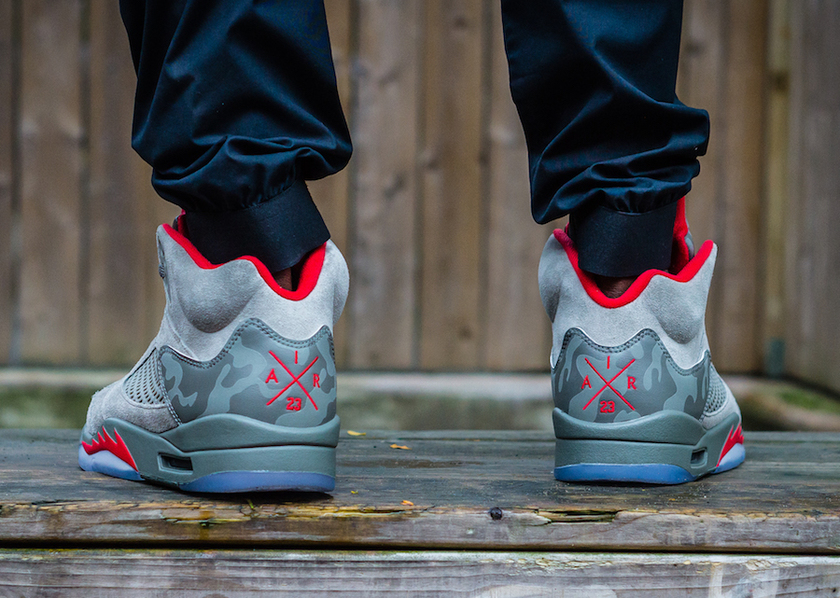 此款 Air Jordan V 将反光迷彩印花与军旅风格的绿色调形成巧妙搭配,并在细节处点缀明亮校园红色增加战斗感。鞋款将于9月2日在nike.com发售,售价¥1399,喜欢的朋友不要错过了哦。