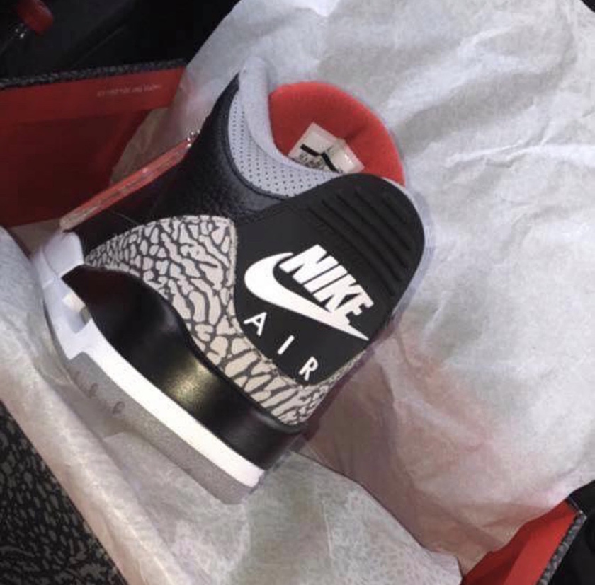 近日, Air Jordan 3 OG Black “Cement” 的男款谍照曝光,其元年的装扮相信会吸引众多球鞋爱好者疯抢。而小编认为,最受好评的也是最吸引人的,是那印有 “Nike Air” 的勾子屁股,相信很多朋友已经把这双黑水泥列入必买名单中了吧。