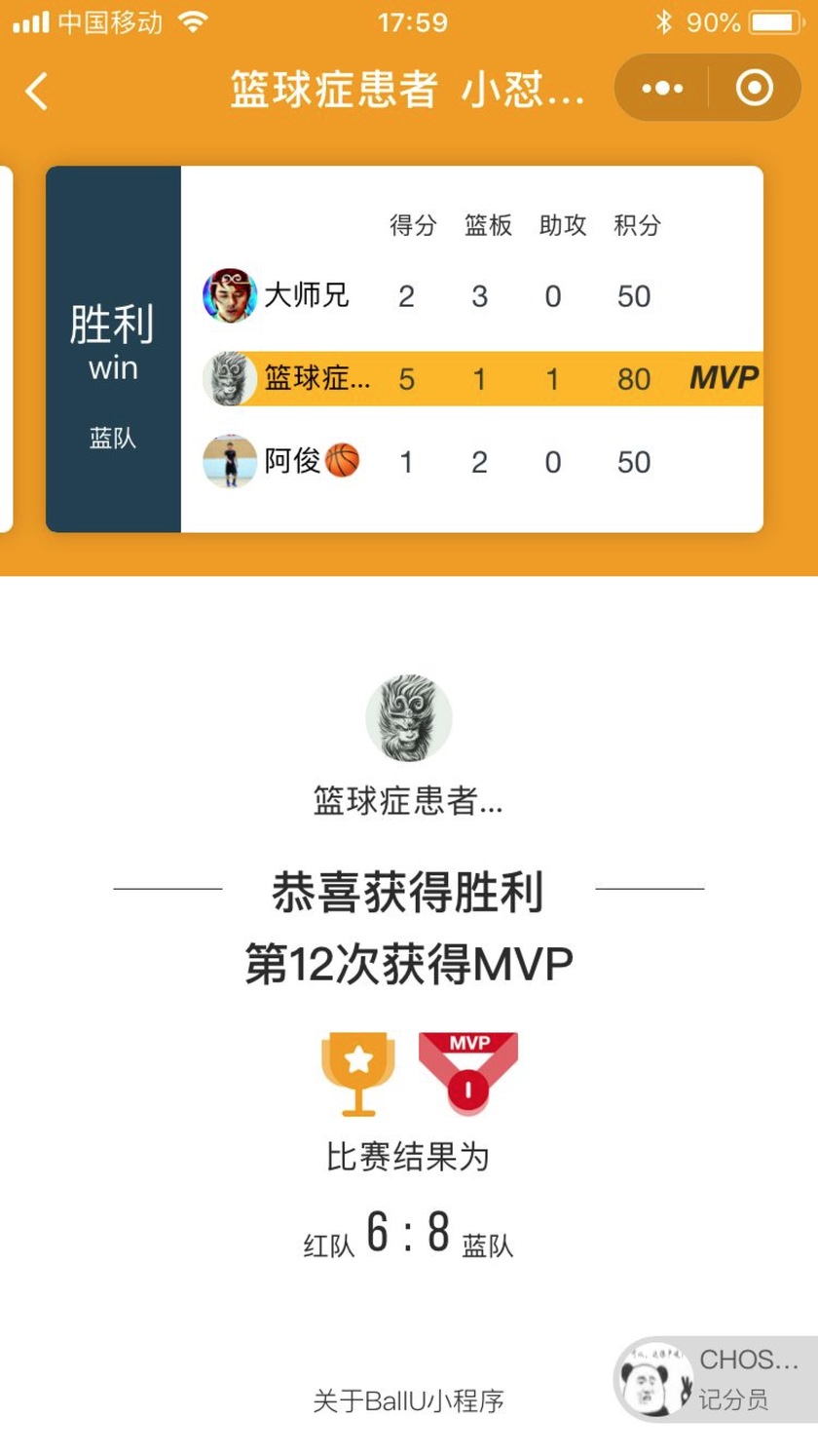 现场随时登陆BallU微信小程序查看各队得分