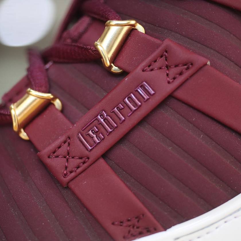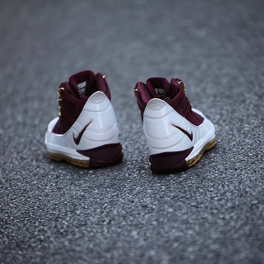这款 2006 年的亲友限定配色以詹皇赞助学校 Christ the King(基督国王高中)为主题,采用酒红、纯白两种色调相搭配,鞋舌狮王 Logo、鞋带扣等鞋面细节均金色点缀。侧面的 Nike Swoosh 也以金色线条勾勒,搭配带有 “ZOOM” 字样的金色 Max Zoom 气垫,贵气十足。而象征基督国王高中的 “CTK” 刺绣点缀于鞋头内侧,直击亲友主题。