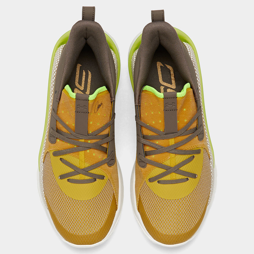 安德玛近期为库里的全新一代签名鞋Curry 7带来了全新的黑人月配色,风格上采用了黑人月主题历来常用的偏黄色调呈现。鞋身主体的网眼网布材质采用土黄色呈现,后跟的填充位置则用了与之相近的墨绿色和褐色形成鲜明层次感,最后用亮眼的翠绿色点缀。