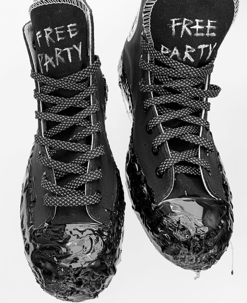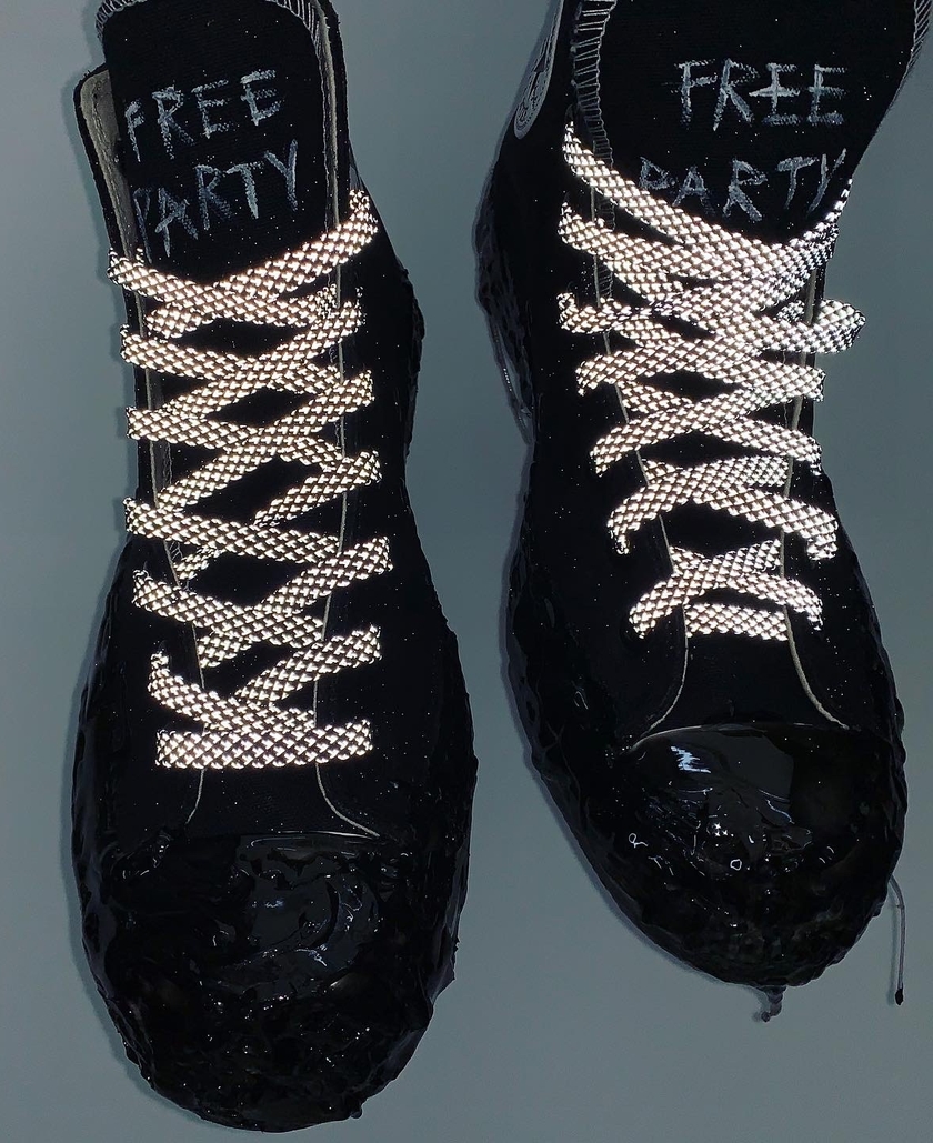 细节部分,鞋舌处的 FREE PARTY 这样以及鞋底处的橡胶滴露效果处理堪称亮点,带来前所未见的创意潮流气息。据悉这款客制鞋款可于 Bangkok Block Party 周末期间在 Siam Paragon 购得,感兴趣的朋友关注一下~