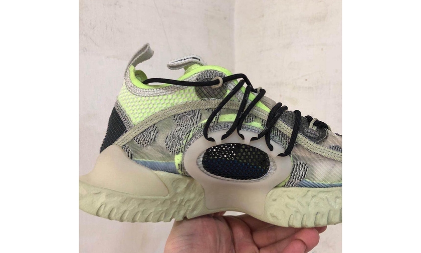 整双鞋采用织物、复合蝉翼、透气网布、热熔等多种材质结合打造。独特的鞋面纹理,不规则圆孔细节的注入,营造出强烈的科幻感。外底前所未见的蜂巢设计堪称最大亮点,让人不禁好奇上脚这款鞋是什么体验。
