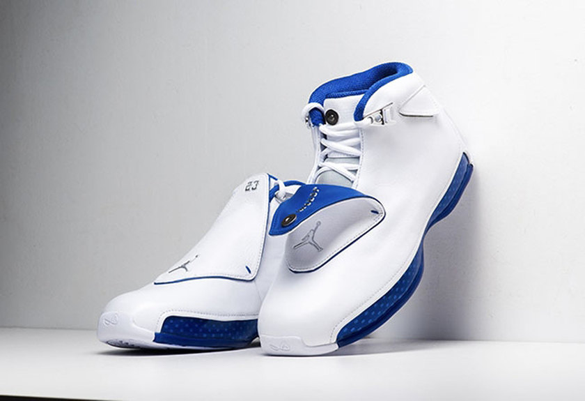 设计灵感来自兰博基尼Murcielago的Air Jordan 18 在2018年年初复刻,元年的金属鞋盒,毛巾和鞋刷子及时放到现在也是顶级奢华的配置,配件会变,中底配置不会变,尊重元年配置—全掌ZOOM AIR 气垫,加后掌马蹄ZOOM AIR ,也是乔丹元年正代第一次采用这种奢华的中底科技。