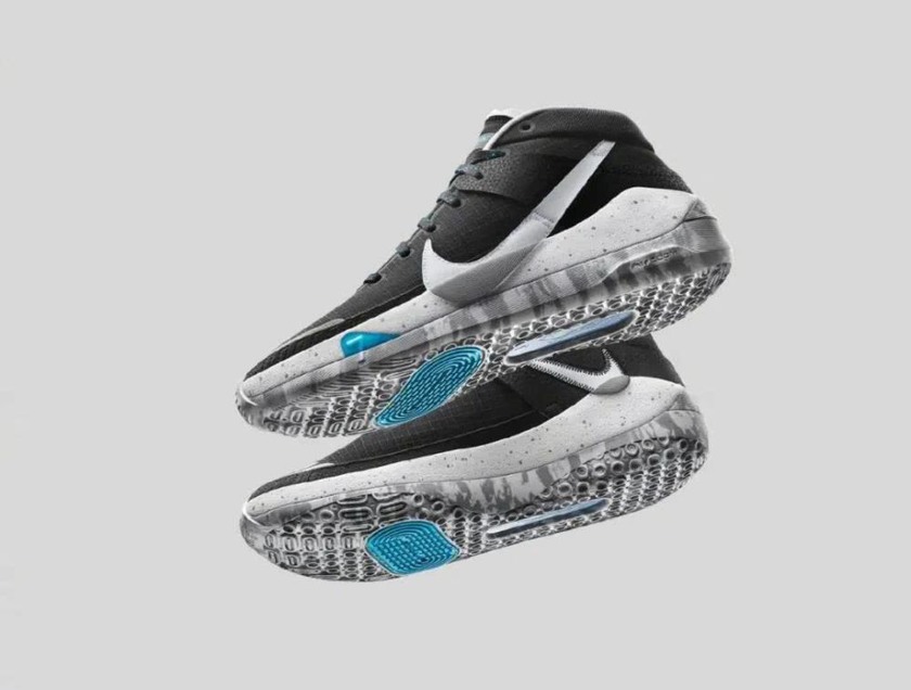 现阶段双层气垫大多在后掌呈现,而近期刚上市的KD13,沿用前作凹槽的全掌ZOOM AIR 气垫系列的配置基础上,与之搭配在前掌放置了一块扇形ZOOM AIR ,作为首款前掌双层ZOOM AIR 气垫篮球鞋,KD系列算是成了第一个吃了螃蟹的系列。