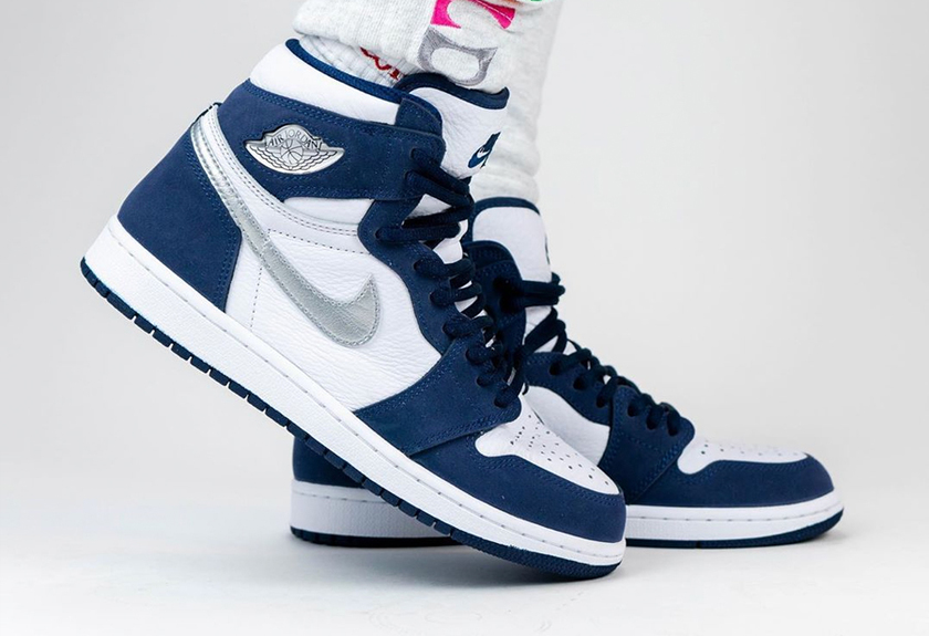 这款 Air Jordan 1 CO.JP“Midnight Navy”整体采用午夜蓝皮革与白色皮革拼接而成,鞋侧点缀银色 Swoosh ,气质经典高级,上脚也非常耐看百搭。
