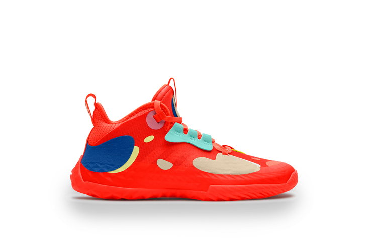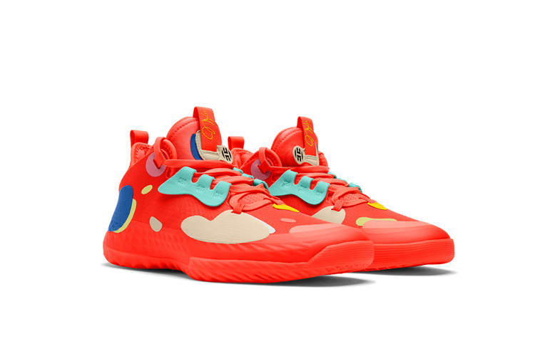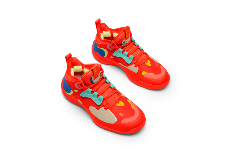其中 Harden Vol.5 首发配色以大红装扮示人,亮蓝、深蓝、亮黄以及杏色等亮色调的点缀,丰富了鞋款的视觉效果,同时也让整双鞋颇有热感应图像既视感。