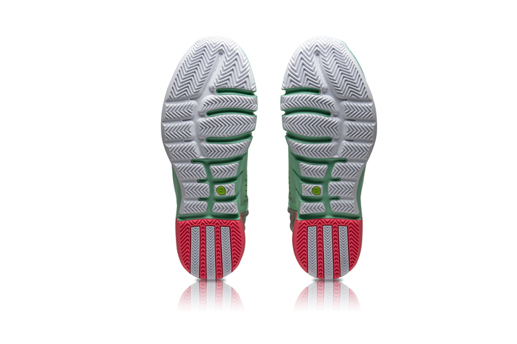 罗斯休战后的“复出战靴”D Rose 4 Boardwalk 则以湖水绿、灰色拼接而成,遍布的冲孔细节以及大胆切割元素加持,使整体气质复古又前卫,视觉效果十分多元。