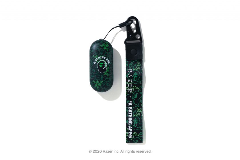设计上以 RAZER 代表性的绿色为基调,融合 BAPE 经典迷彩印花、猿人头图案以及 RAZER 标志性三头蛇徽标,街头潮流感十足,还别有一番幽暗神秘意味,相信会受到不少游戏玩家和潮流爱好者青睐。