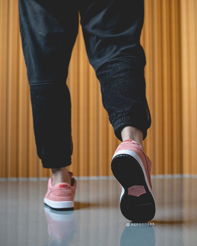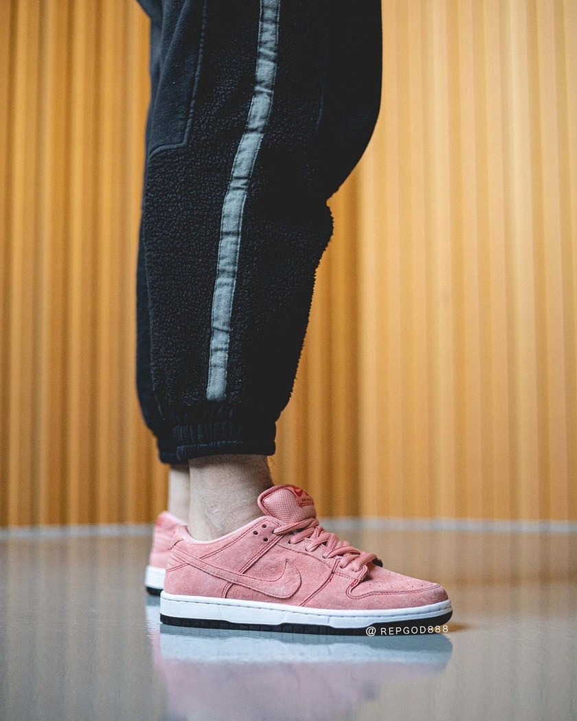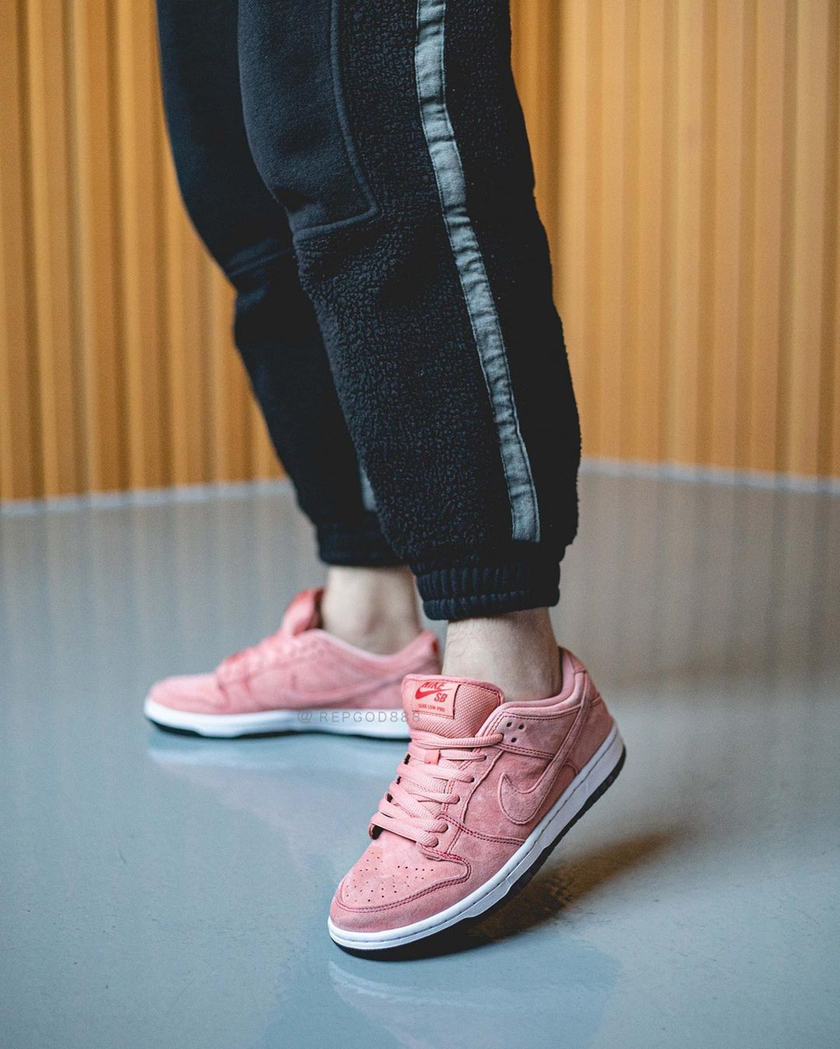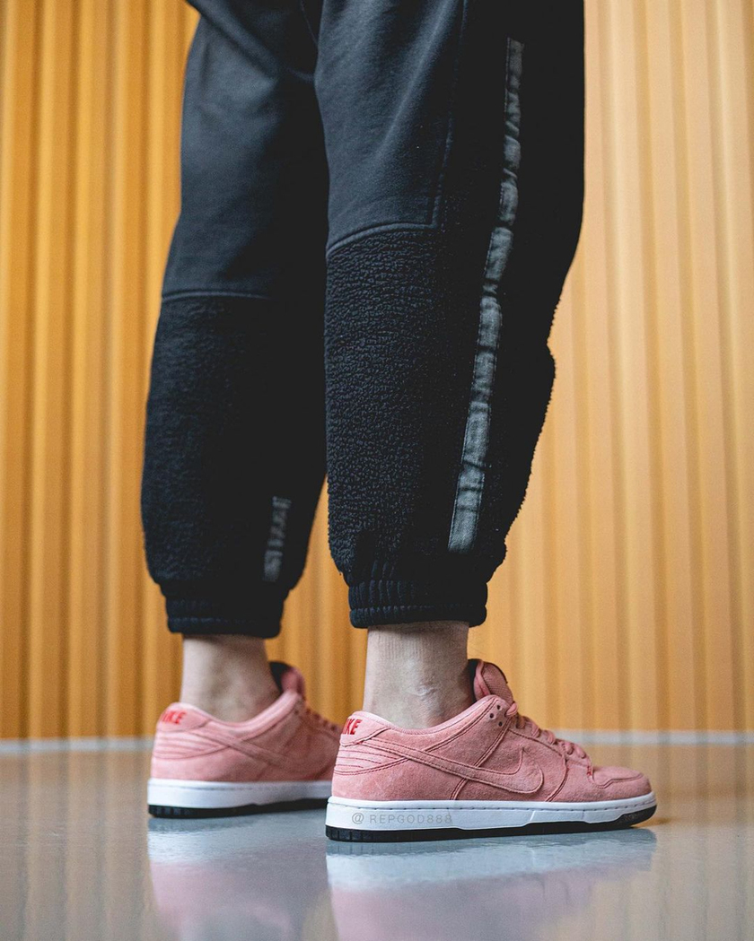 近日曝出实物美照,让不少鞋迷大为惊艳的 Nike SB Dunk Low “Pink”,此番迎来了首次上脚演绎。