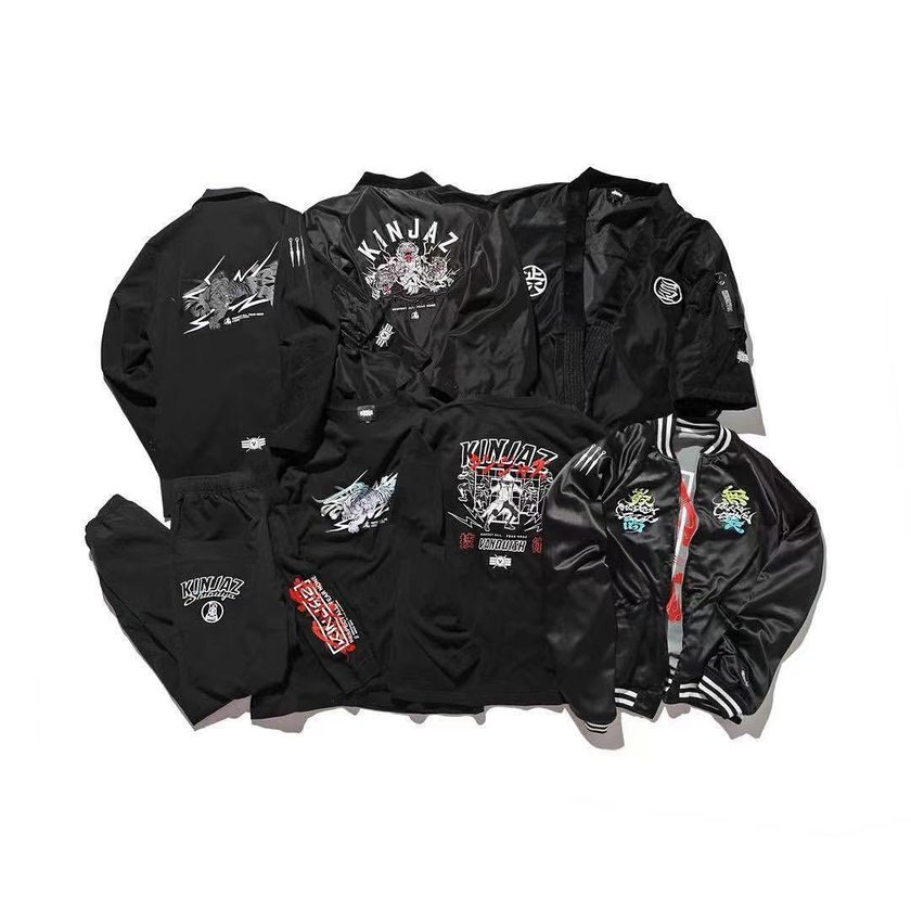 系列将街头风格与现代日本传统服装结合,以黑色为主调,搭配 Kinjaz 标志性 Logo ,呈现极具辨识度的视觉效果。