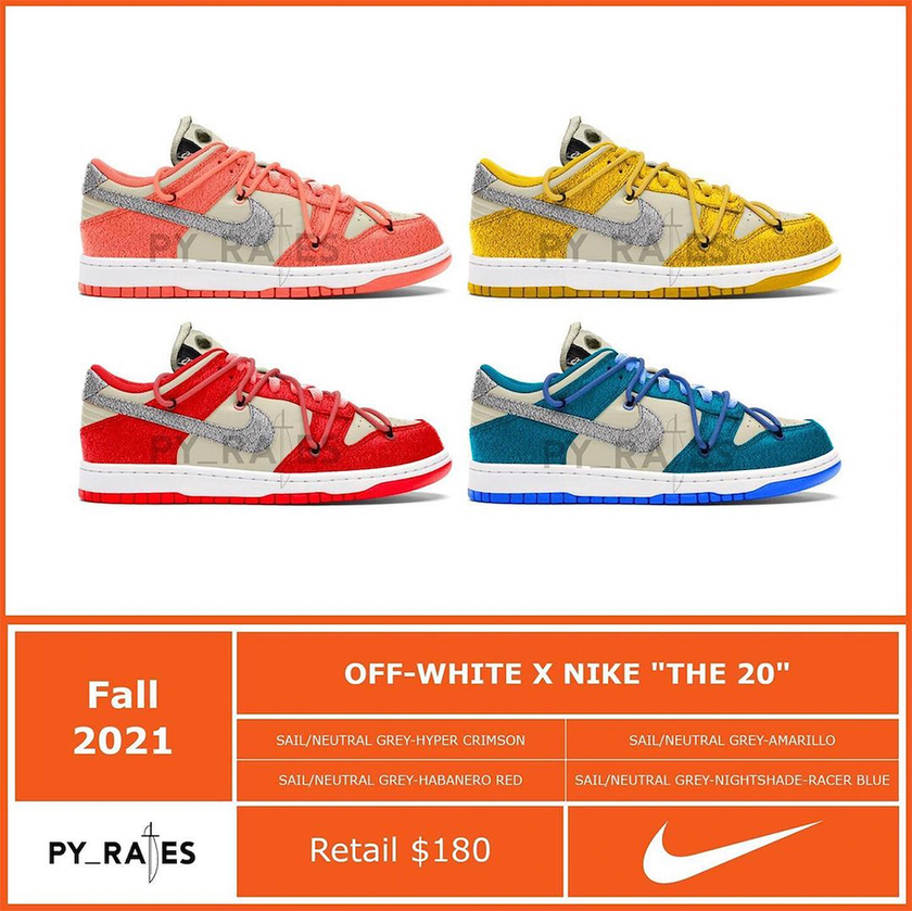 早前传的沸沸扬扬,让无数鞋迷激动不已的 Virgil Abloh Off-White x Nike “The 20” 系列,近日有最新消息曝光,原来 “The 20” 系列是 20 双 Dunk Low 联名!