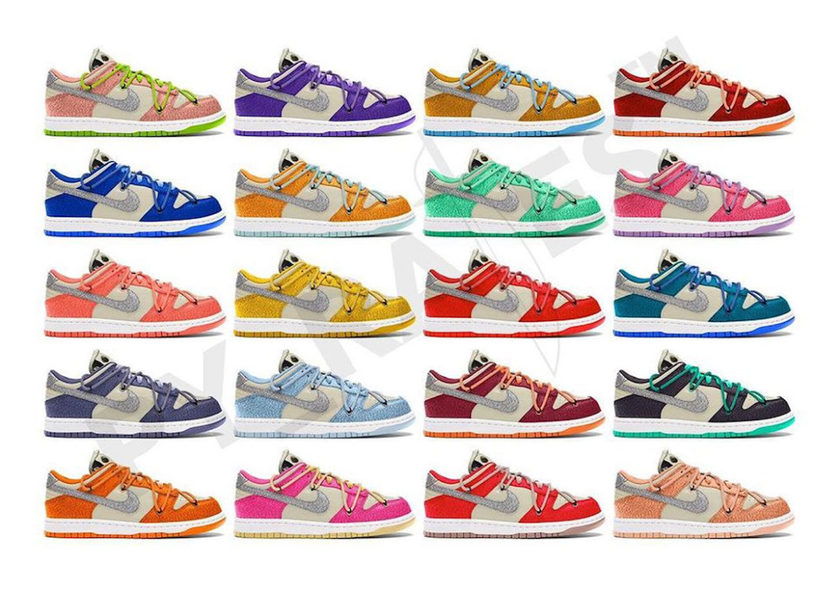 同样的设计,换 20 个配色,这一波可真的是“诚意十足”,人人都能穿 OW x Nike Dunk 指日可待了?