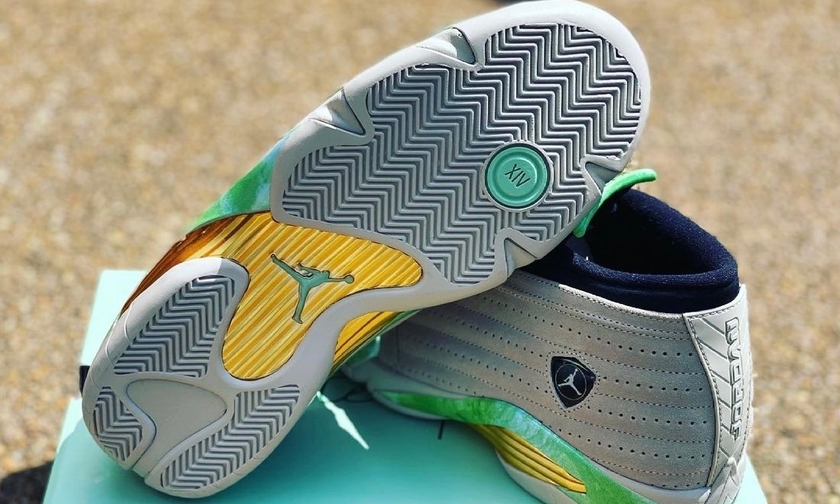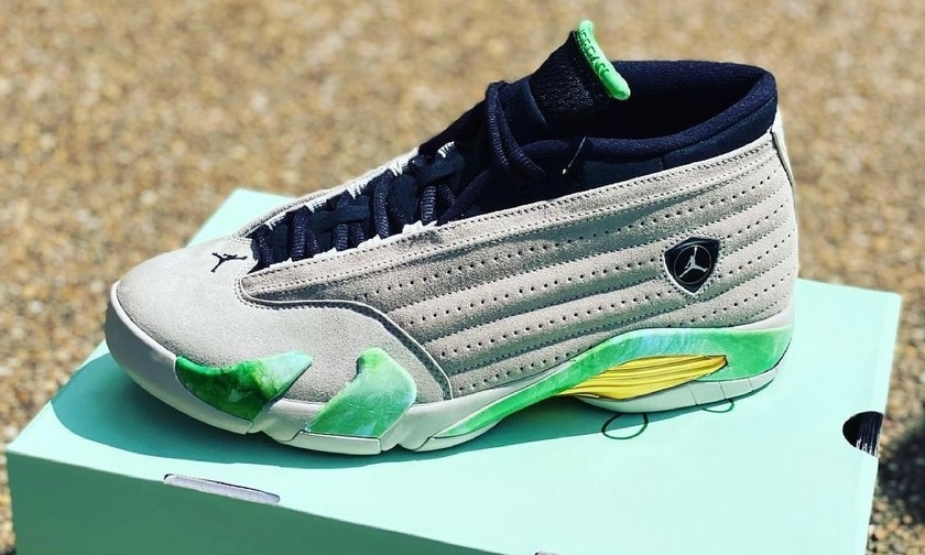 而今年,双方将再度合作,除了今年年初曝光过的 Air Jordan 1 Zoom Comfort 以外,还将推出一款 AJ 14 联名。此番 Aleali May x Air Jordan 14 Low 实物首度曝光了。