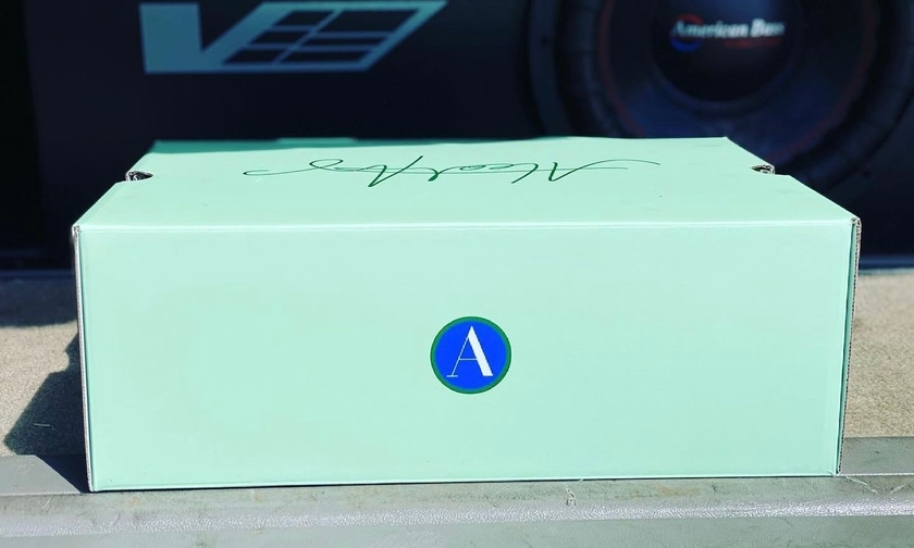 鞋盒也以薄荷绿呈现,点缀 Aleali May 签名,联名辨识度极强。另外,包装纸采用了金色锡箔纸,提升了华丽感。