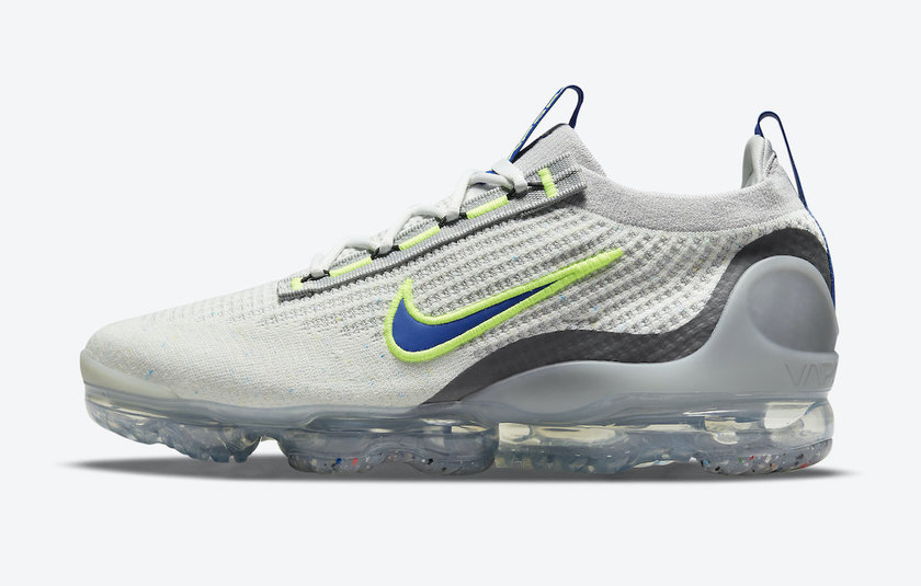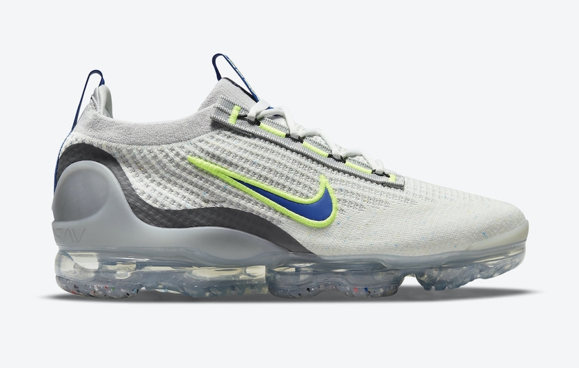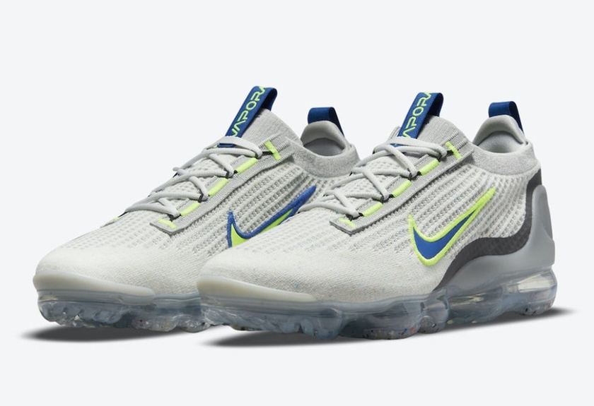 最近 Nike 公布了一款经典「雪碧配色」VaporMax 2021 的官图。整个鞋面使用大面积灰色 Flyknit 材料为基础,搭配鞋侧蓝色 Swoosh Logo 和荧光绿色的缝线,视觉效果十分出众。据悉这双全新的 Nike Air VaporMax 2021 会在今年年内正式发售,发售价格为 200 美元。