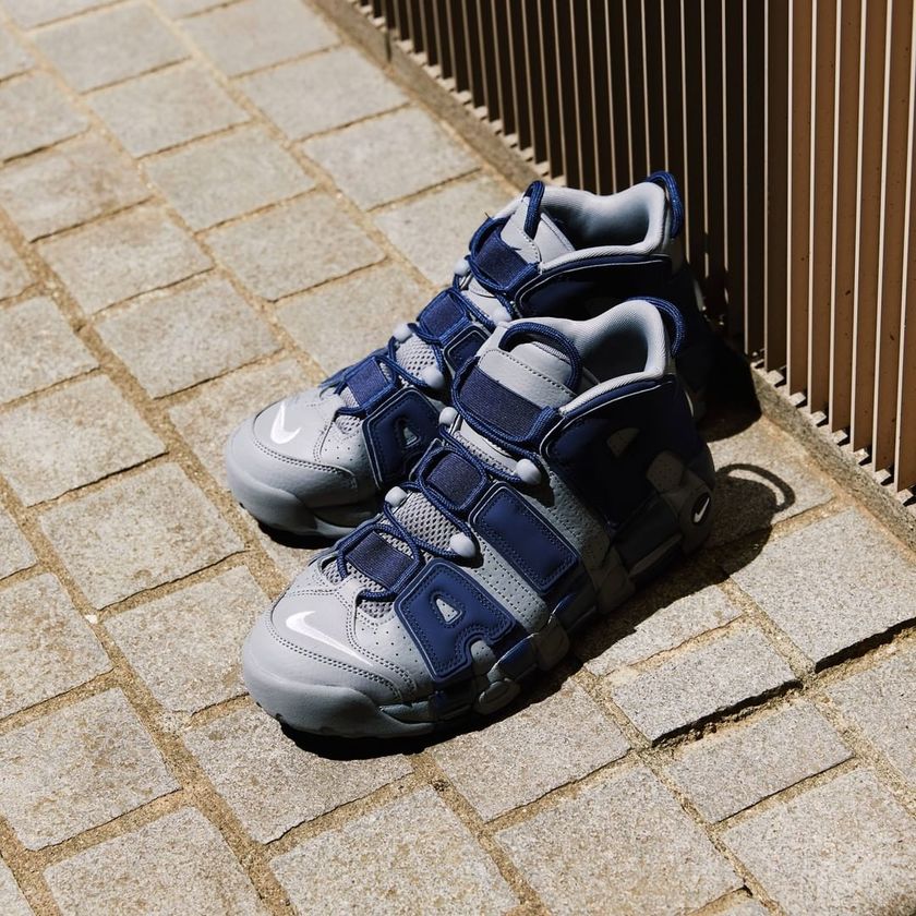 最近一款全新配色的 Nike Air More Uptempo 曝光了官图。整双鞋以蓝灰双色为主调,材质方面采用光面皮革和麂皮制成。鞋侧身标志性的 AIR 字样依旧抢眼。目前这双全新配色的 Air More Uptempo 已在日本潮流店铺 atmos 正式发售。