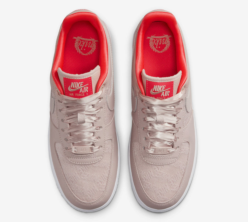 最近一款全新配色的 Air Force 1 公布了官图。整双鞋以大面积的粉丝丝绸鞋面作为基础,搭配白色中底,细节上鞋面的印满的 Nike 字样和鞋带运用的丝绸材质,使整双鞋看上去质感十足。据悉这双全新的 Nike Air Force 1 Low 会在 2022 年正式发售,具体发售信息目前未知。
