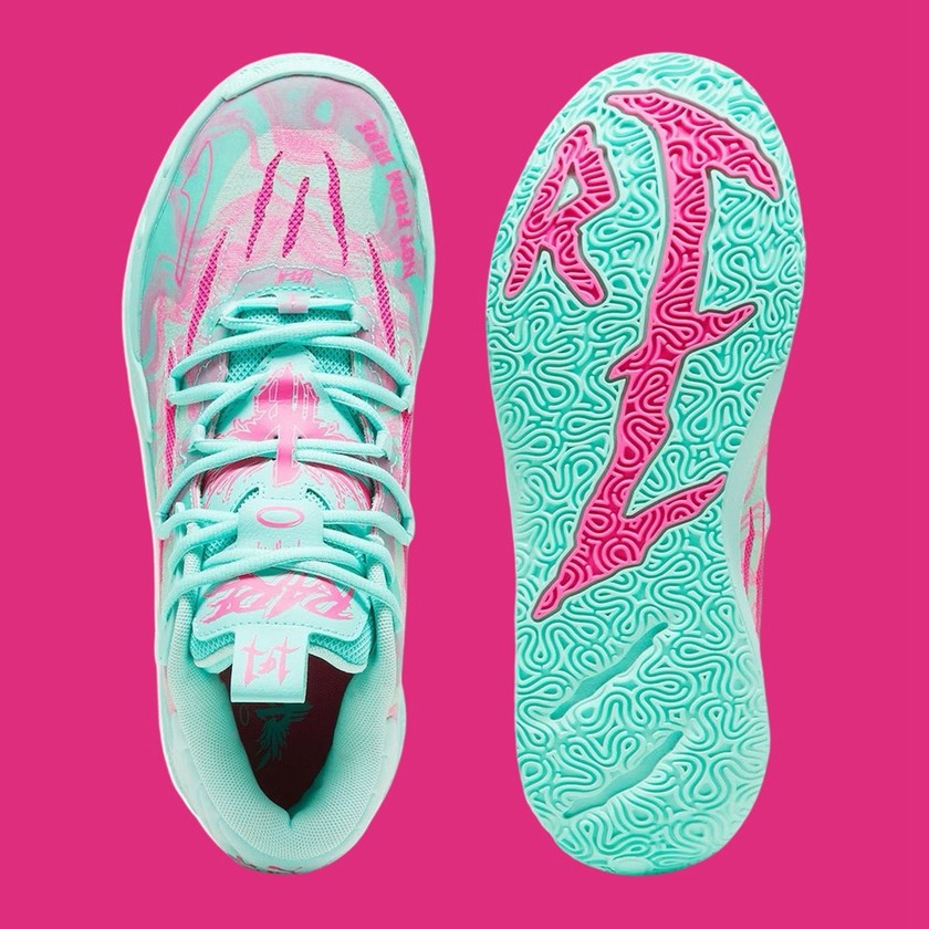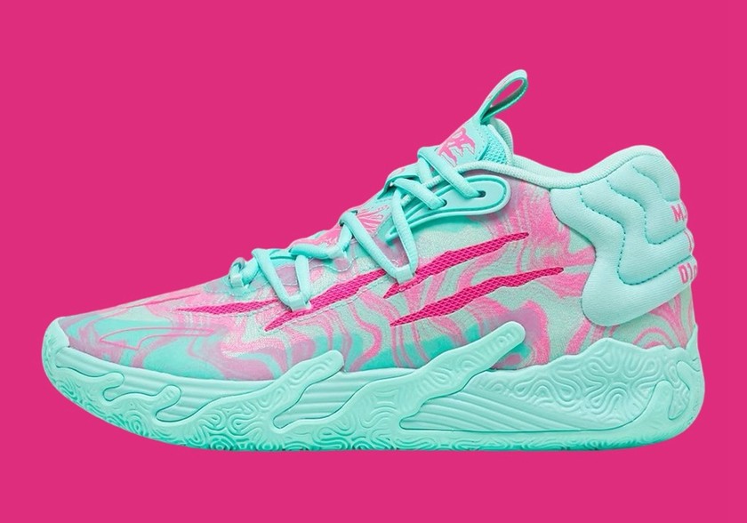 最近一双全新配色的 Puma MB.03 “Miami”公布了官图。整双鞋采用湖水绿搭配粉色为主调,搭配鞋面花纹以及毒液般的鞋面构造,中底科技采用 PUMA NITRO:tm:,保证了实战性能。据悉这双全新的 Puma MB.03 “Miami” 将于近期正式发售。