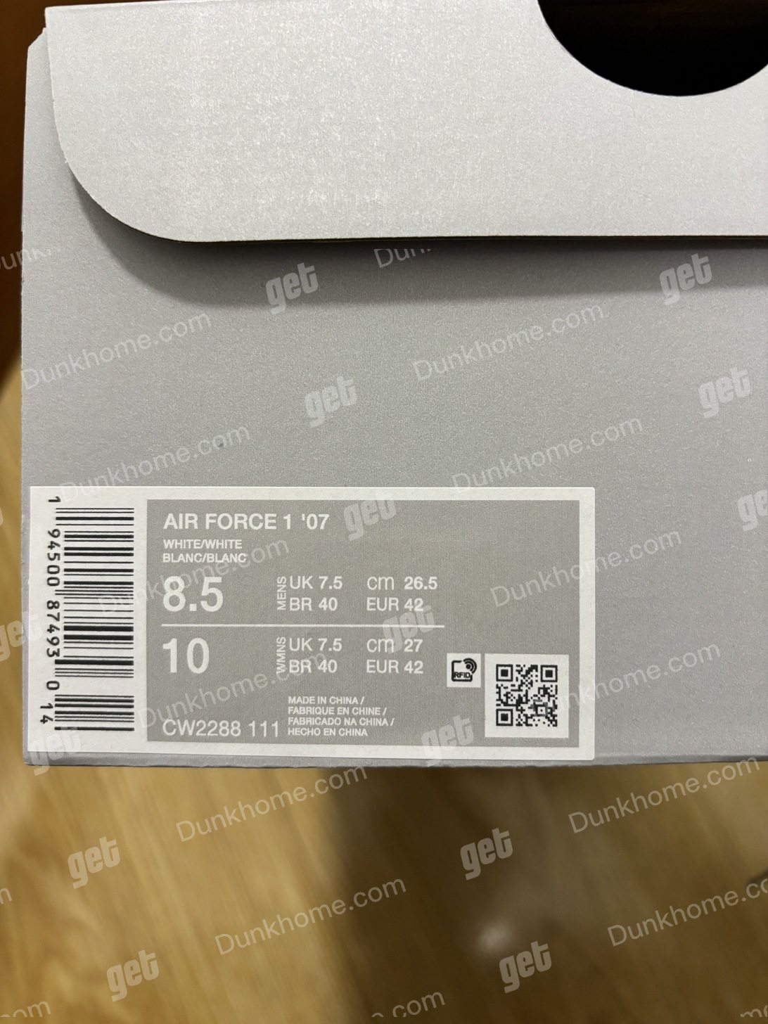 耐克/NIKE男款纯白AF1空军一号男子经典板鞋 CW2288111,没有钢印,味道刺鼻。