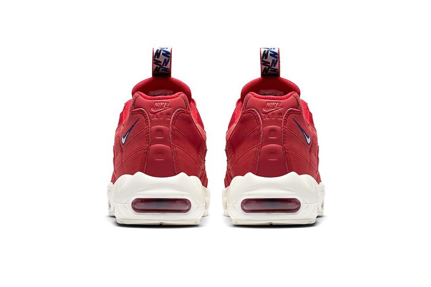 在亚洲地区一直拥有超高人气的 Nike Air Max 95,此番又迎来三款全新配色。本次登场的共有白、红、深蓝三款配色,除了皮革结合网料制作的鞋身,以及 AM95 招牌波浪鞋面纹理和 Max Air 大底之外,该系列的最大特色在于鞋舌正中的几何「串标」设计。这个由 Nike 首字母「N」组成的图案,不仅以红、白、深蓝三色呼应系列主题,同时也让这双经典跑鞋更加抢眼。