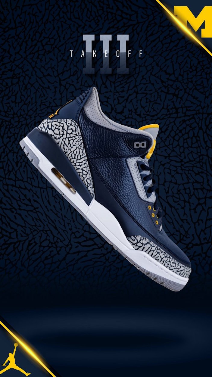自从加入Jordan Brand以来,密歇根大学狼獾队的仇恨值也是突飞猛进!其蓝黄的专属配色和标志性的 “M” Logo 都是那么醒目。近日,密歇根大学狼獾队再次曝光了两双属于他们的专属PE,而这次的鞋型分别为AJ3和AJ12。