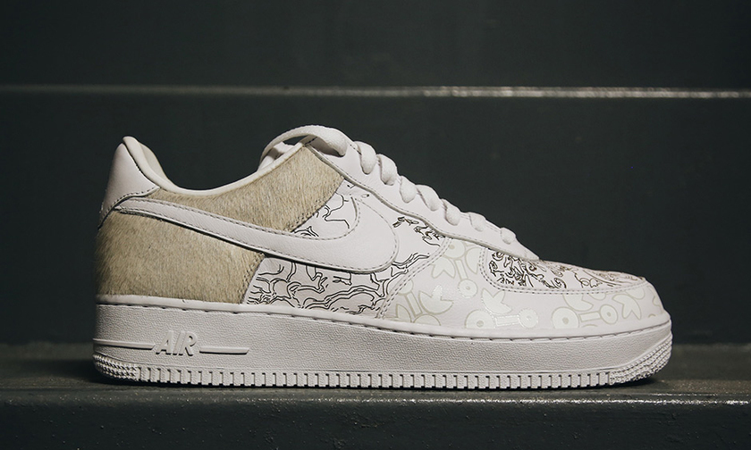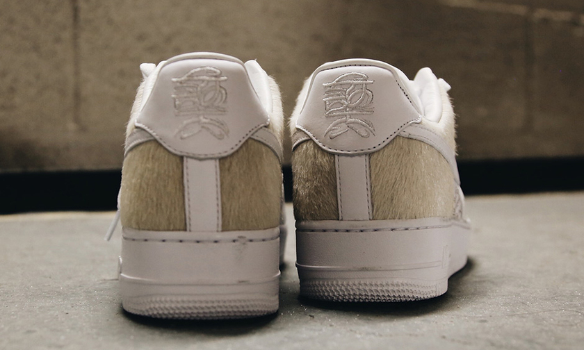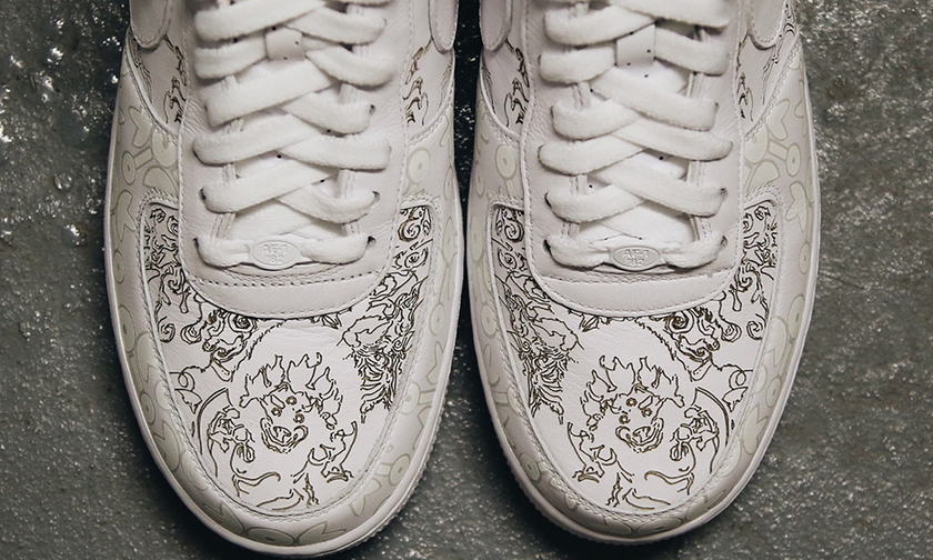 以全白款为蓝本,鞋面带来颇具中国风的印花,此外在后跟处以“獒”字凸显狗年主题。