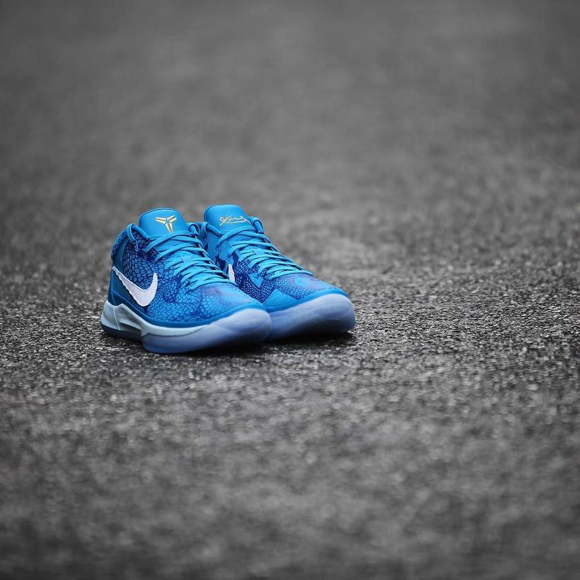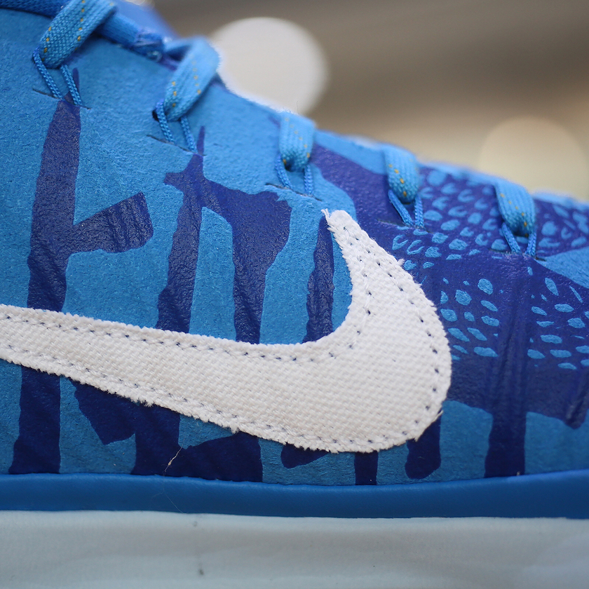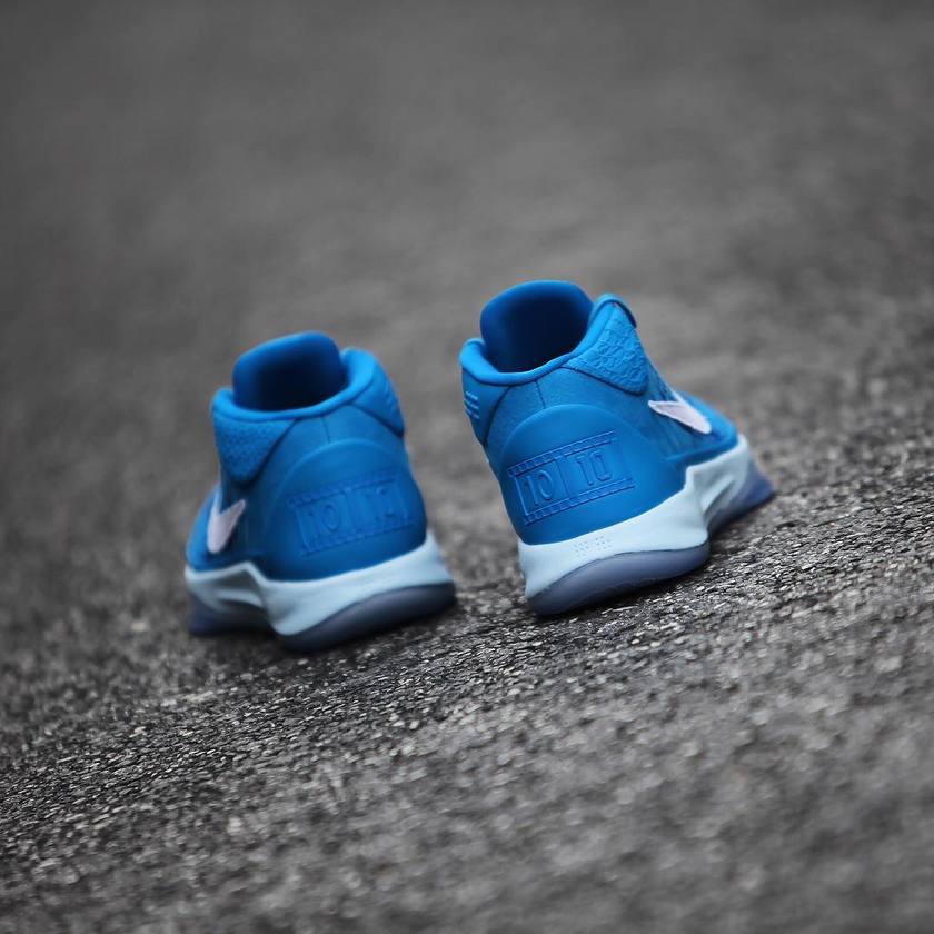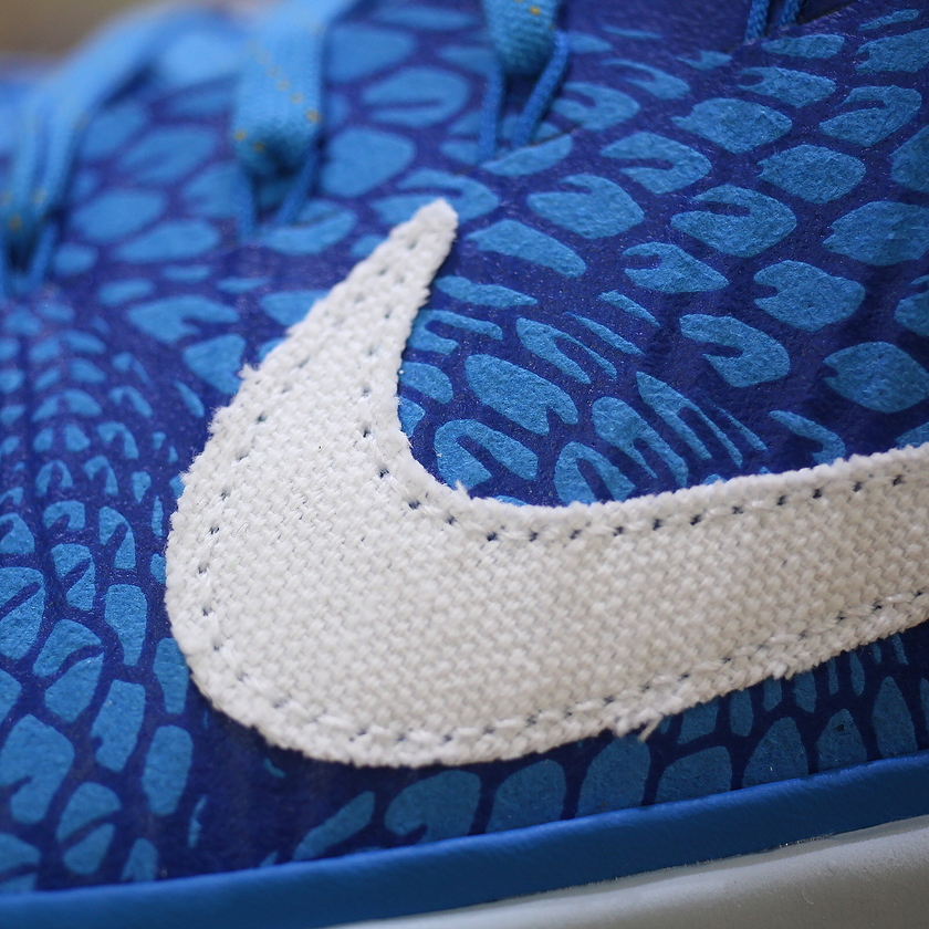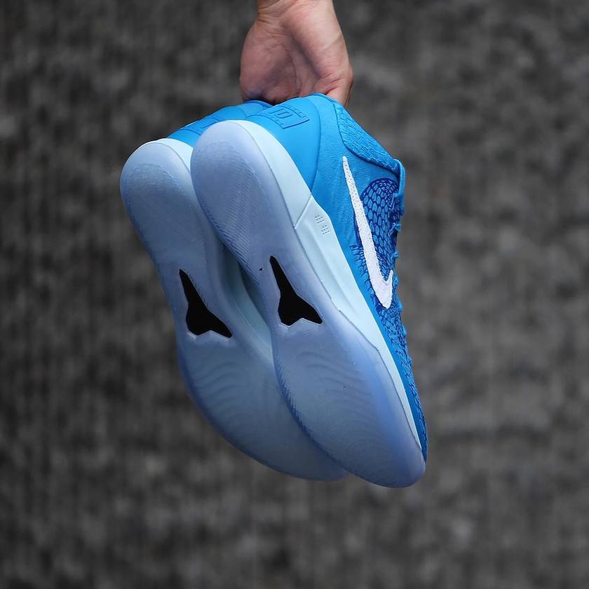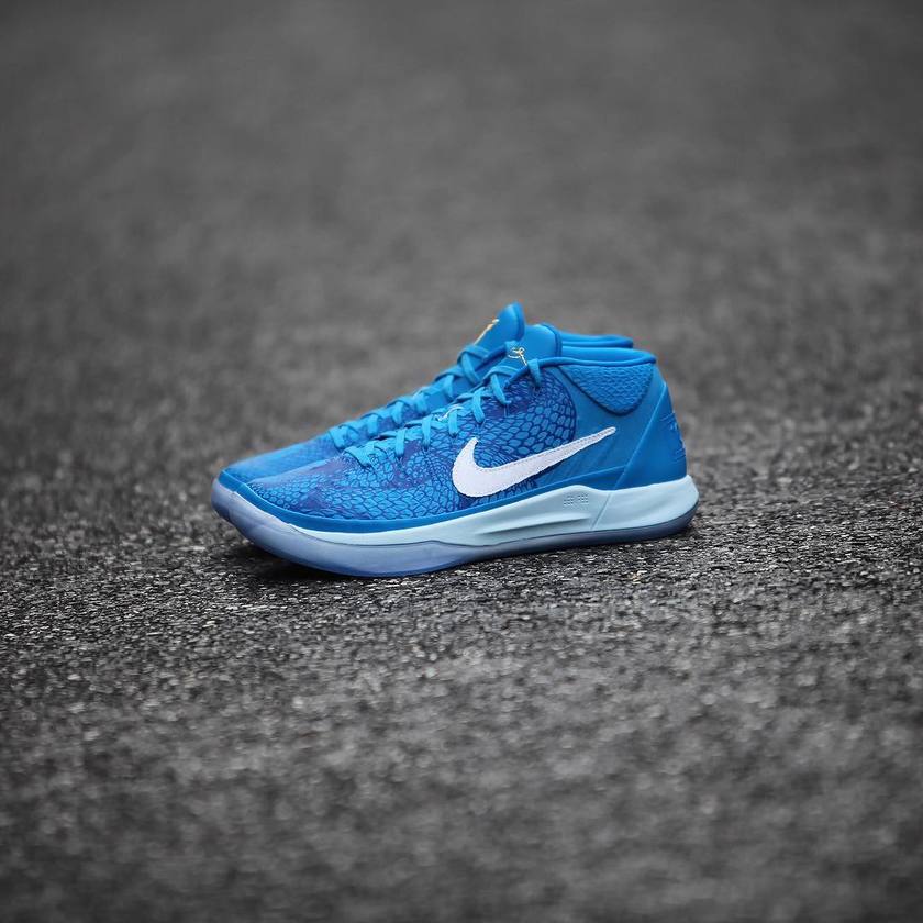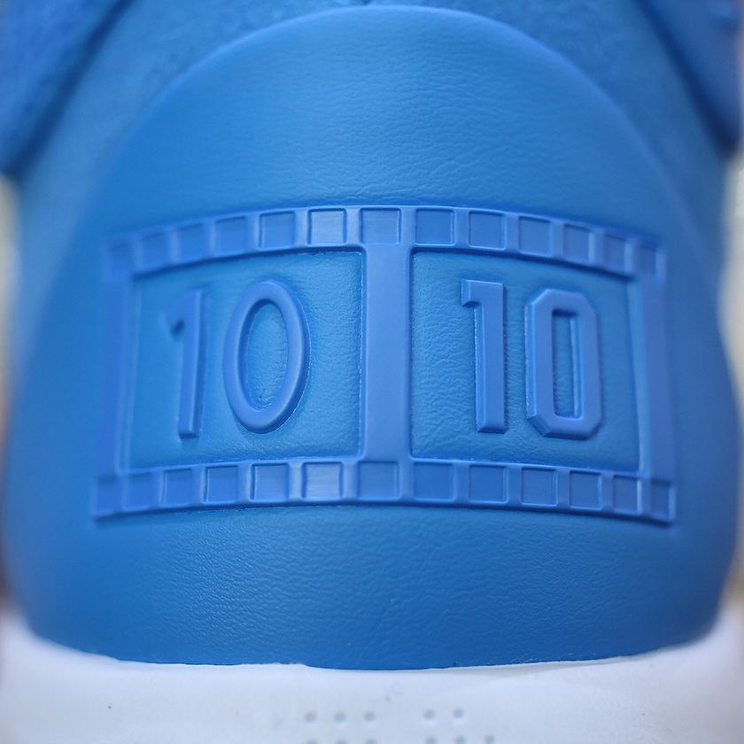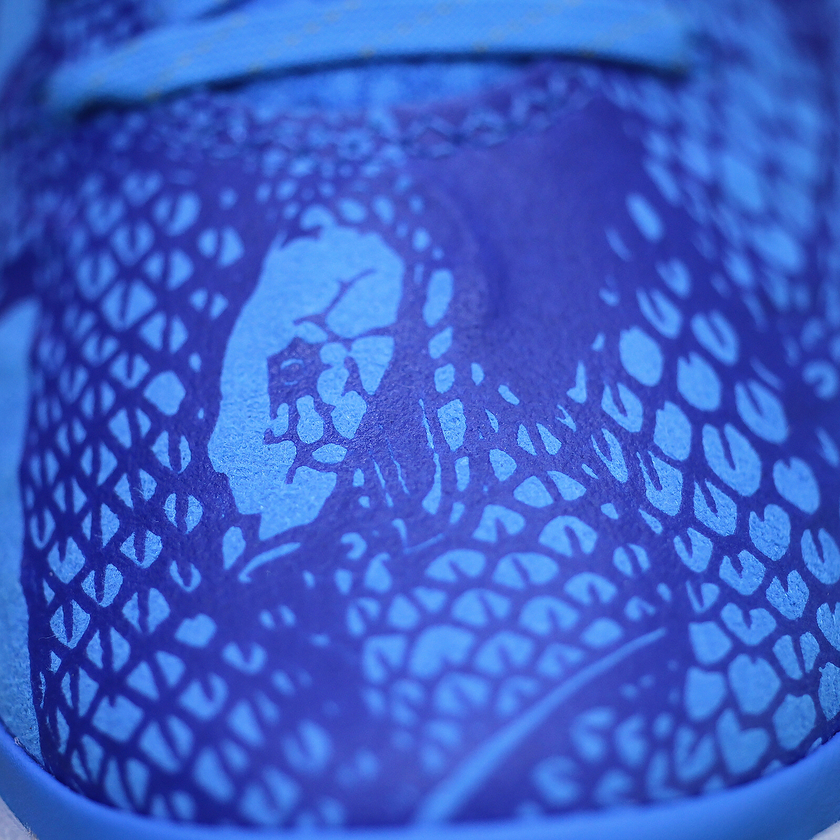 此番以 Nike Kobe AD Mid 为设计蓝本,蓝色鞋身布满象征黑曼巴的蛇纹细节,而侧面的白色 Nike Swoosh 则以帆布材质装点。后跟采用“10/10”的标志,寓指科比美国队的10号以及德罗赞的球衣10号。鞋垫更是以照片双拼的设计呈现,细节满满,致敬意味浓郁。