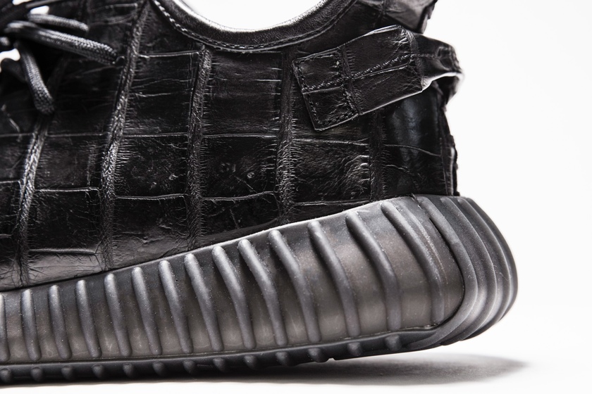 来自于洛杉矶奢华球鞋定制团队 The Shoe Surgeon 再度带来“壕气十足”的新作。此次将 adidas Yeezy Boost 350 V2 改头换面,注入新元素。采用全黑色仿鳄鱼皮打造鞋面,并且搭配相同色调的翻毛皮内衬。用这么奢华的元素重塑Yeezy,不知道是拿来穿还是拿来收藏呢~