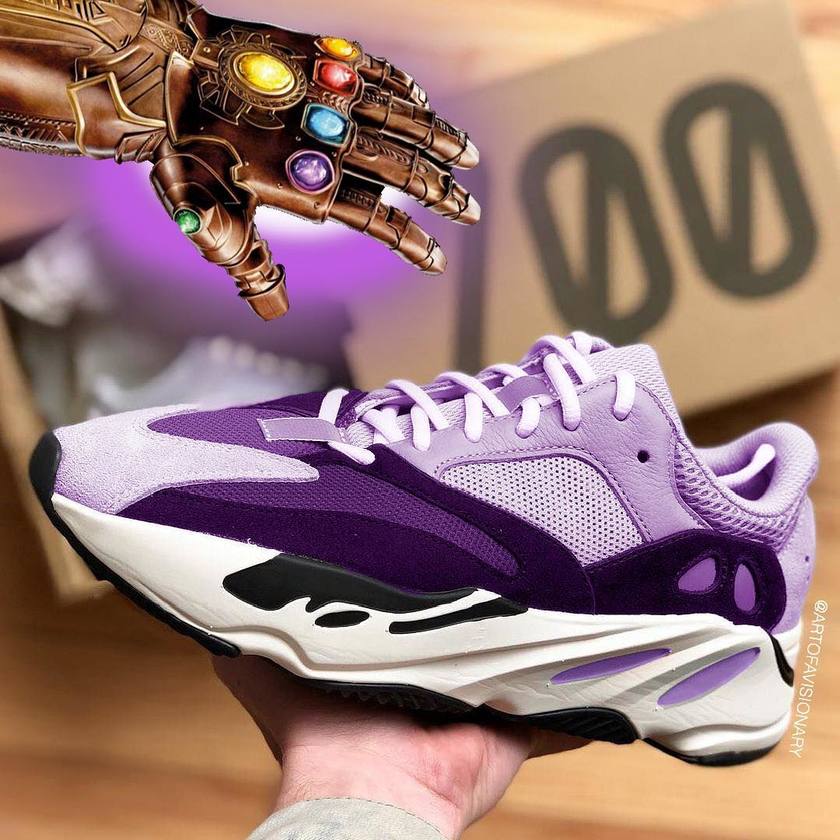 设计师 @artofavisionary 近日趁着“妇联3”电影大热,DIY打造了一款“灭霸”配色的Yeezy 700,不知道你觉得如何?配得上“灭霸”的身份么?