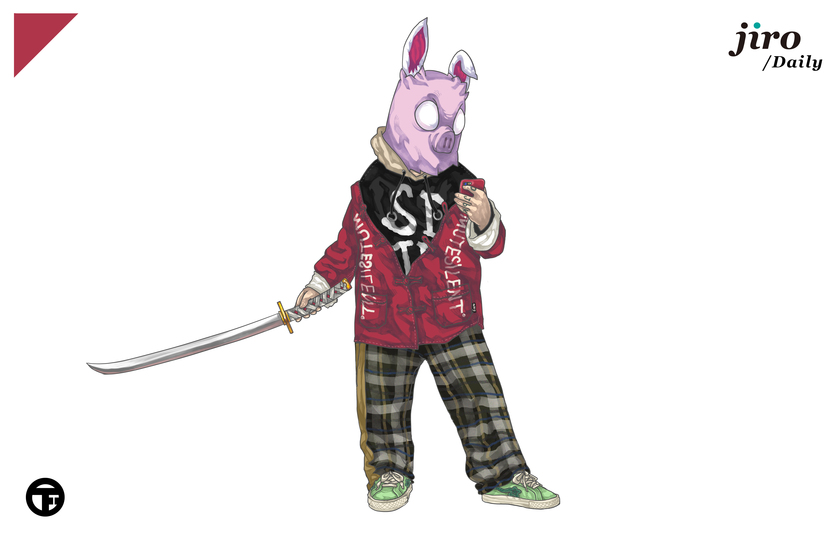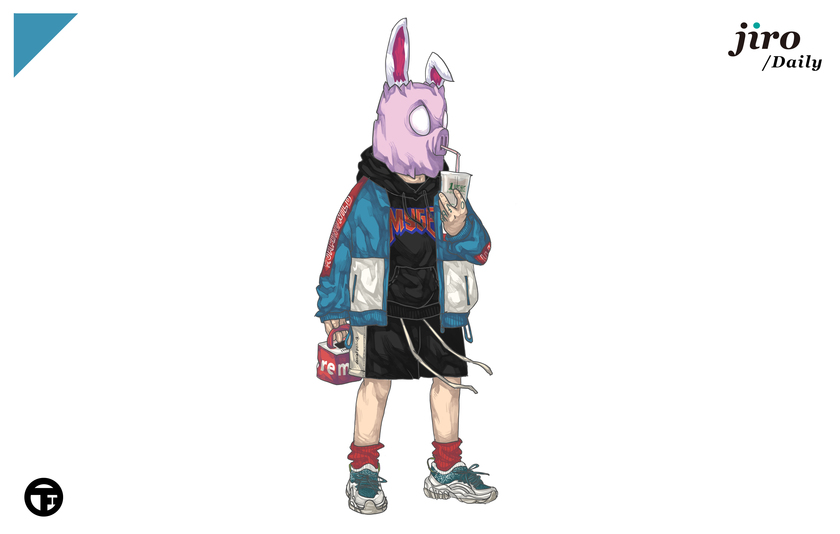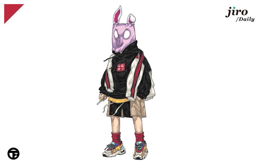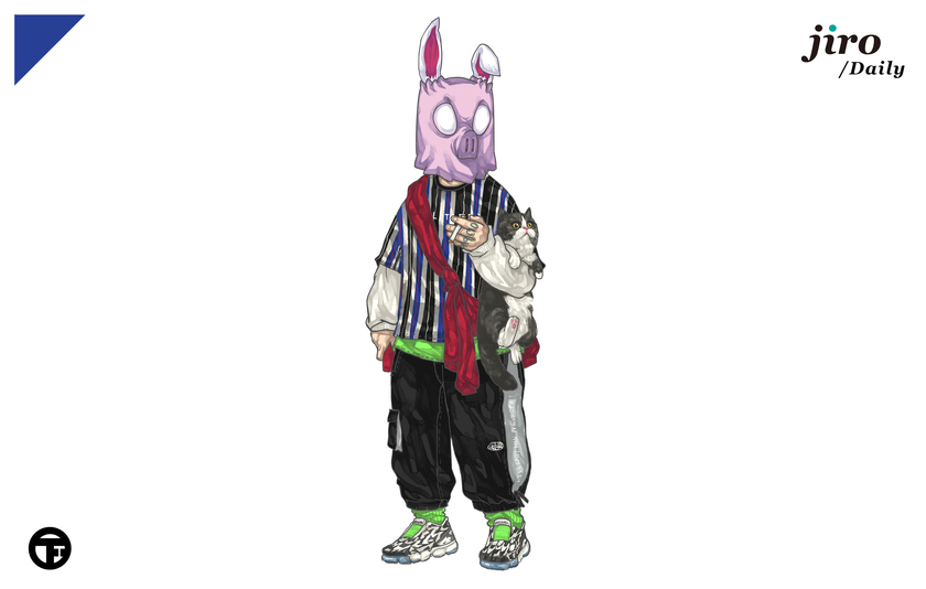 国内艺术家 JoeNG 让自家创作的 Jiro 形象(一个戴着猪+兔头套的虚拟人物)穿上了国内多个不同的街头品牌,包括 Randomevent、MYGE、Roaringwild、UMAMIISUM 等等本土优质品牌逐一出镜进行混搭,甚至是今年大热的李宁也全套上身,搭配的效果似乎也蛮值得日常穿搭中进行参考,而插画中人物的各种喝奶茶、玩手机等小细节也颇为逗趣。