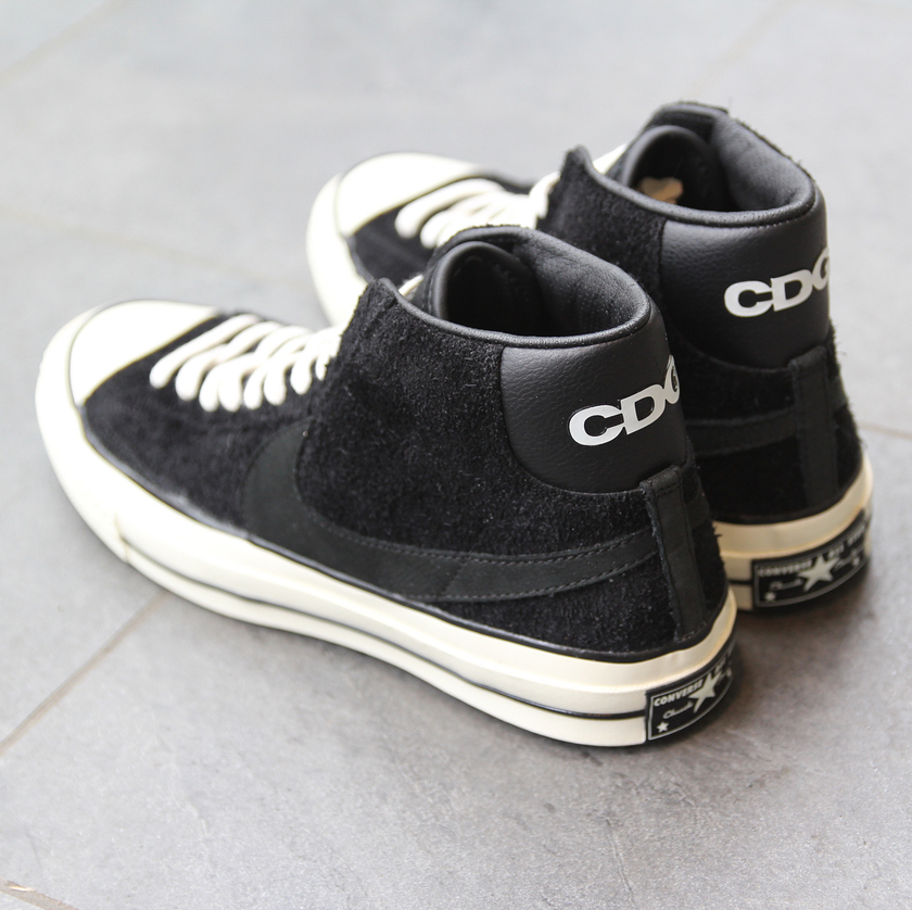 RECOUTURE 是一家主打更换鞋底设计的日本鞋店,在这里你可以找到各种独一无二的“混血”鞋款,比如最近这双 Nike x COMME des GARÇONS x Converse 的梦幻“三方联名”大作,便巧妙将 Nike x COMME des GARÇONS 在 2014 年推出的一双 Blazer 鞋身,与 Converse Chuck Taylor All Star 1970s 的经典鞋头和大底相结合,从外观上看几乎没有违和感,完成度相当高。目前该鞋款尚未在 RECOUTURE 上架,感兴趣的朋友不妨前往店铺官方网站了解更多。
