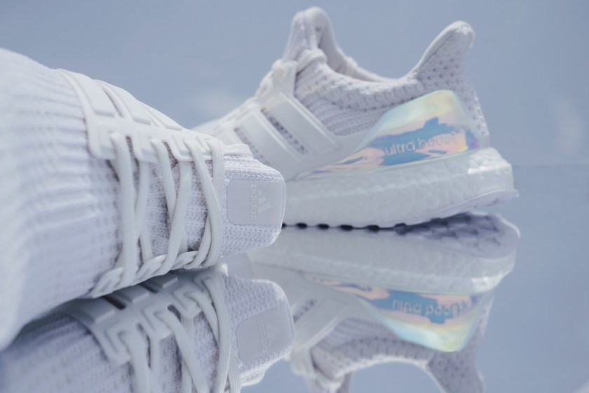 adidas 今季为 UltraBOOST 4.0 释出全新“Iridescent”别注系列,以七彩反光材质重塑这双经典跑鞋。系列中共带来黑、白两款配色,除了延续 4.0 版本的 Primeknit 鞋面纹理,更在鞋尾配以七彩反光材质作点缀,在光源映照下可反射出彩虹光谱般的炫目效果,至于鞋底方面依旧是全掌 BOOST 中底与 Continental 橡胶大底的组合,继续为跑者带来出色脚感。