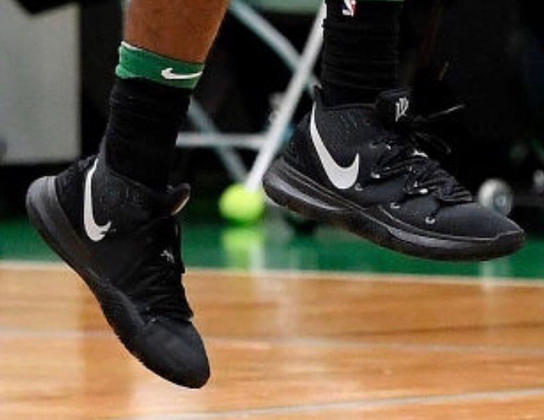 每年欧文的签名鞋都会在年底前后正式发售,因此现在我们还无法购买到欧文5或者拿到一定资料。但是近日我们收到某个波士顿“热心市民”的消息,欧文在训练中上脚了一款球鞋印有他logo和签名的球鞋,这款球鞋大概率就是他的欧文5了,不过这个消息还没有正式确定,让我们静候佳音。