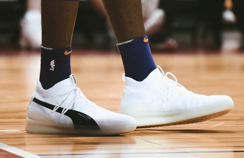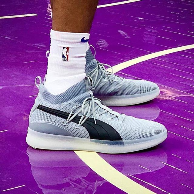 不过我们看到这双鞋的鞋型参照Puma旗下经典的Clyde板鞋设计,通过编织鞋面来呈现今年流行的一体式鞋身和袜套,看起来是非常非常脆弱的鞋面。相对于作为实战篮球鞋,它不错的外观造型和配色让人更想买来作为一双休闲鞋作为穿搭鞋款。