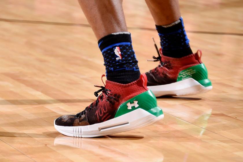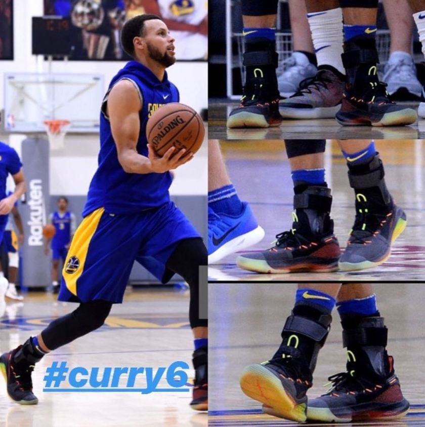新赛季马上开始,但是如今NBA的代表性人物史蒂芬·库里的新鞋却还一点消息都没有。不过最近我们又通过金州的热心市民得到了一点关于库里6的消息。库里在训练中上脚了一双神秘鞋款,基本确定就是全新的Curry 6了。