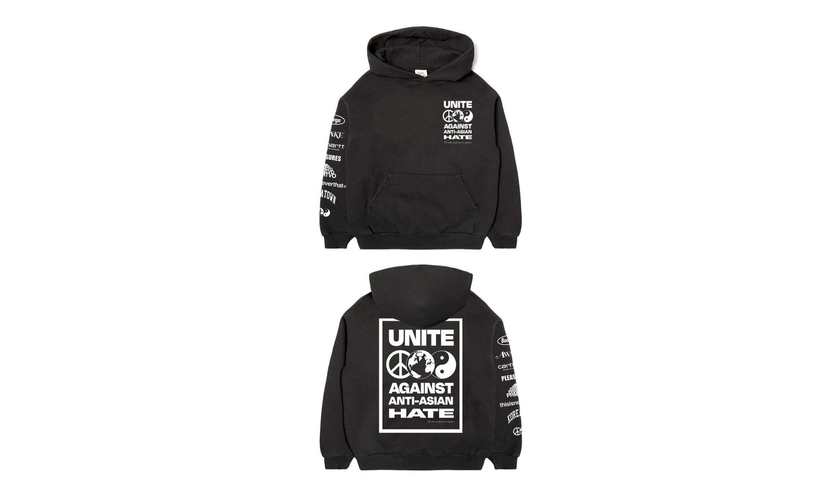 为反对针对亚裔的歧视、仇视与暴力,近日,球鞋名所 Bodega 携手六家知名潮流品牌,包括 PLEASURES 、Awake NY 、Carhartt WIP 、PRMTVO 、thisisneverthat 以及KOERATOWN ,共同推出了一款印有反亚裔歧视宣传标语的帽衫。