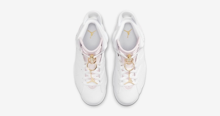 最近一款全新的 Air Jordan 6 “Gold Hoops” 公布了发售信息。整双鞋的亮点是许多基于金色耳环的小细节遍布鞋身,包括鞋舌处的金色圆环、鞋带扣以及钥匙扣 Logo 。